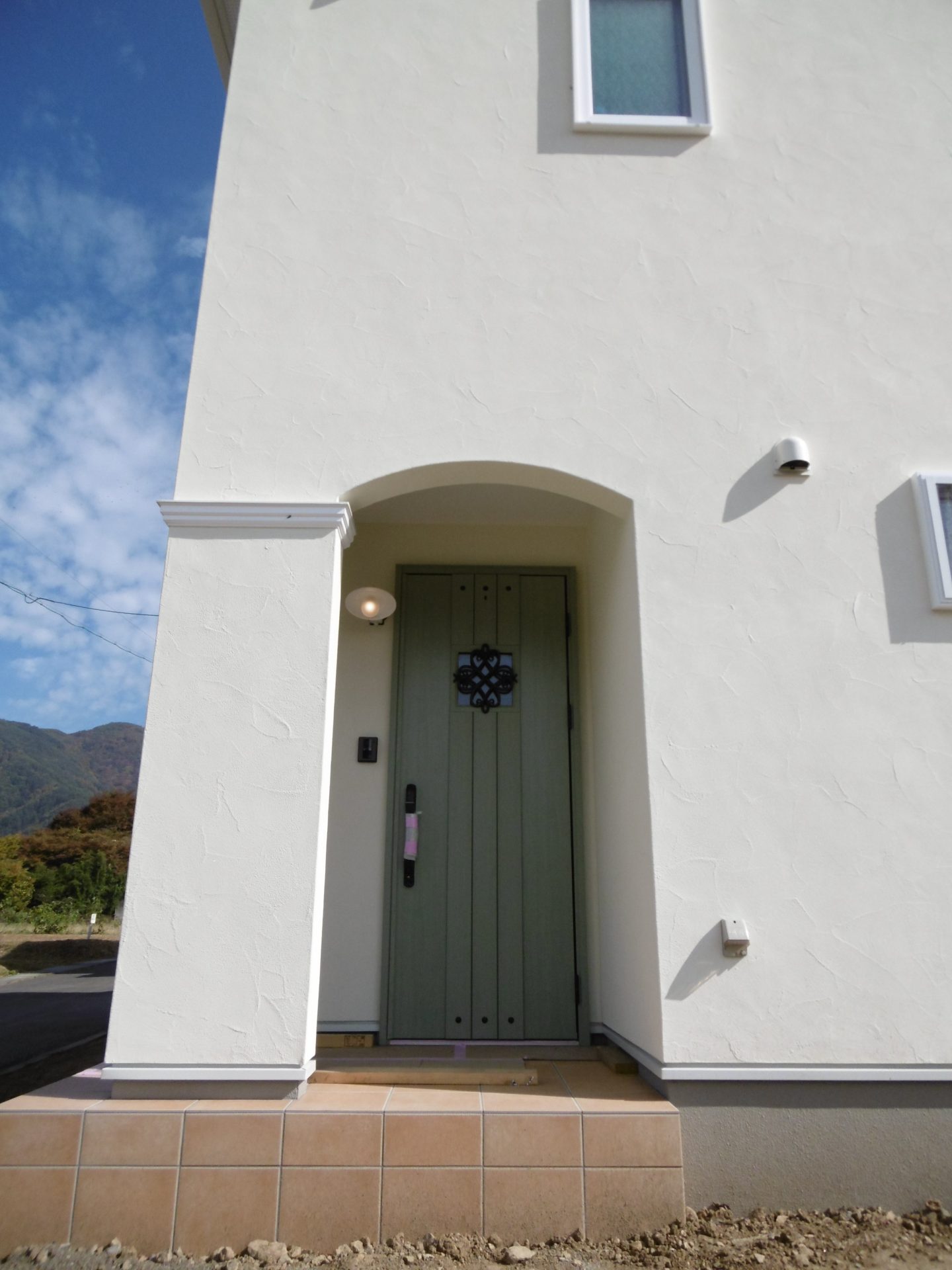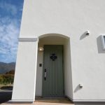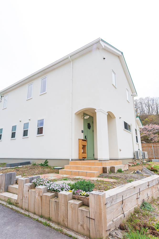 スッキリとした外観の中に、テンポよく並んだ窓やアーチ開口の存在感が際立ちます。