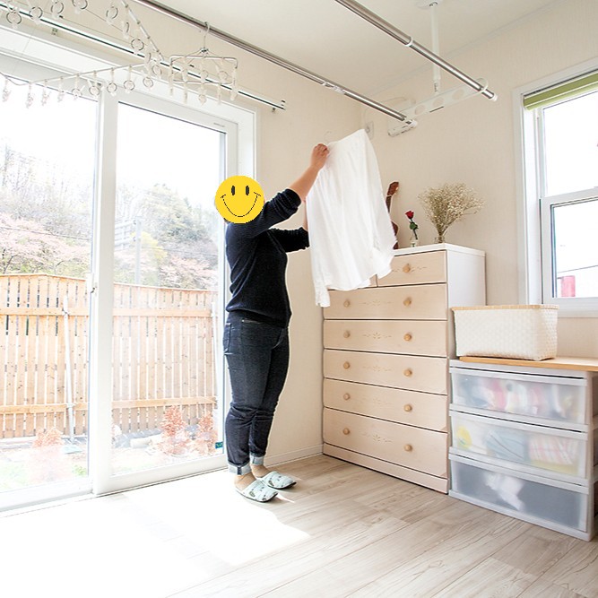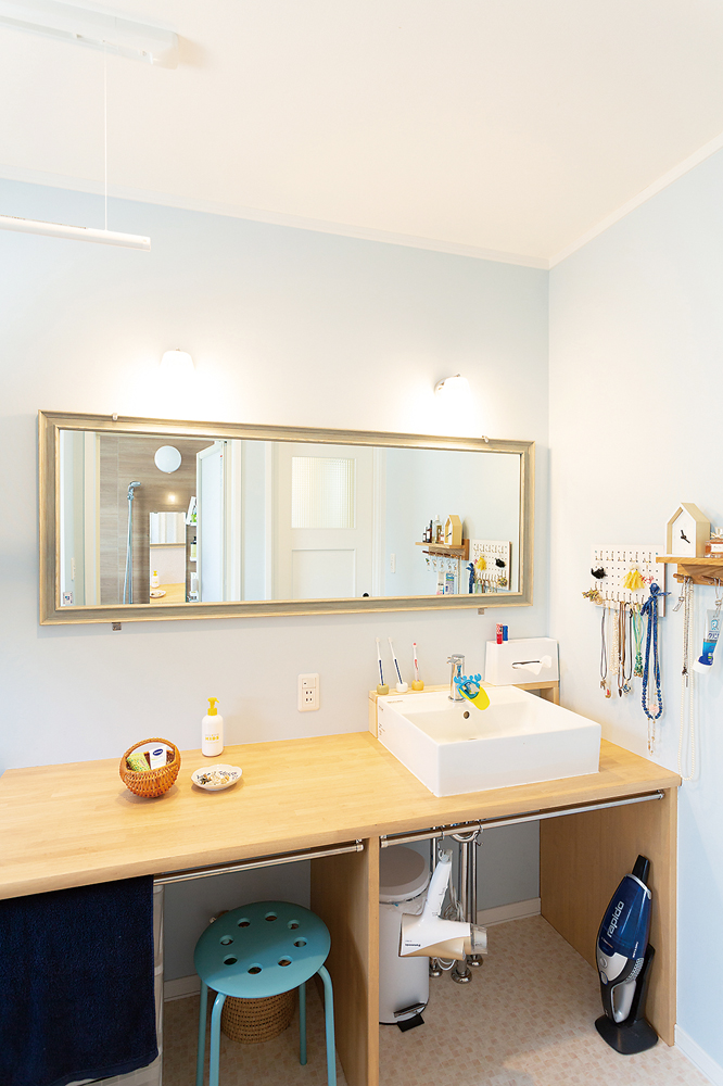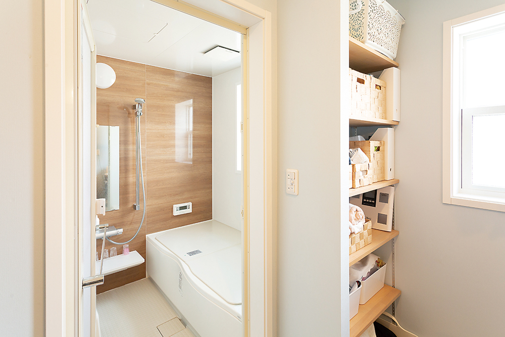 洗面脱衣室にも可動棚を付けたので、タオル等もたくさん収納できます。