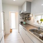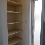 キッチン奥の食品庫。この背面に同じ棚があるのでタップリ収納できます。