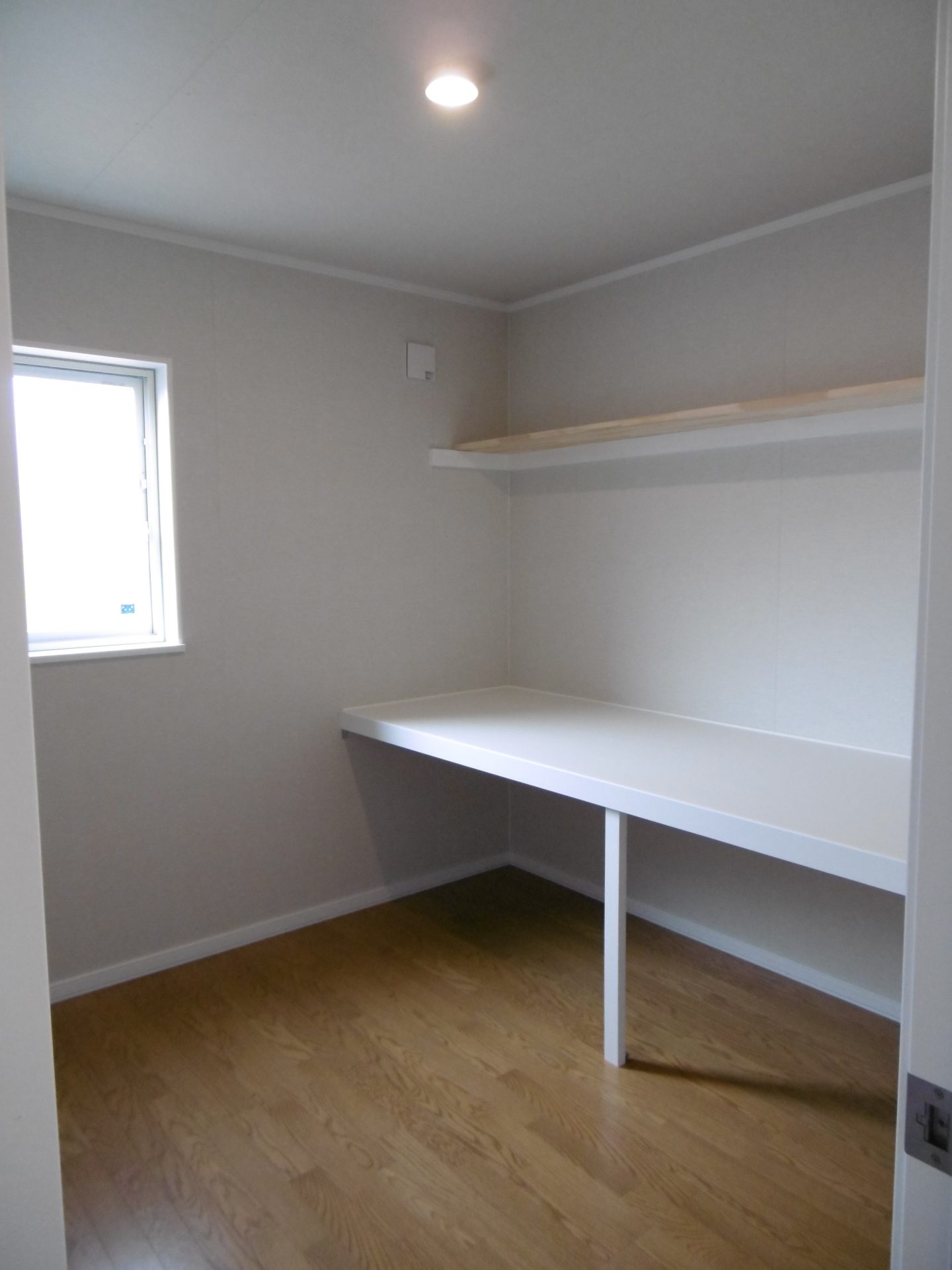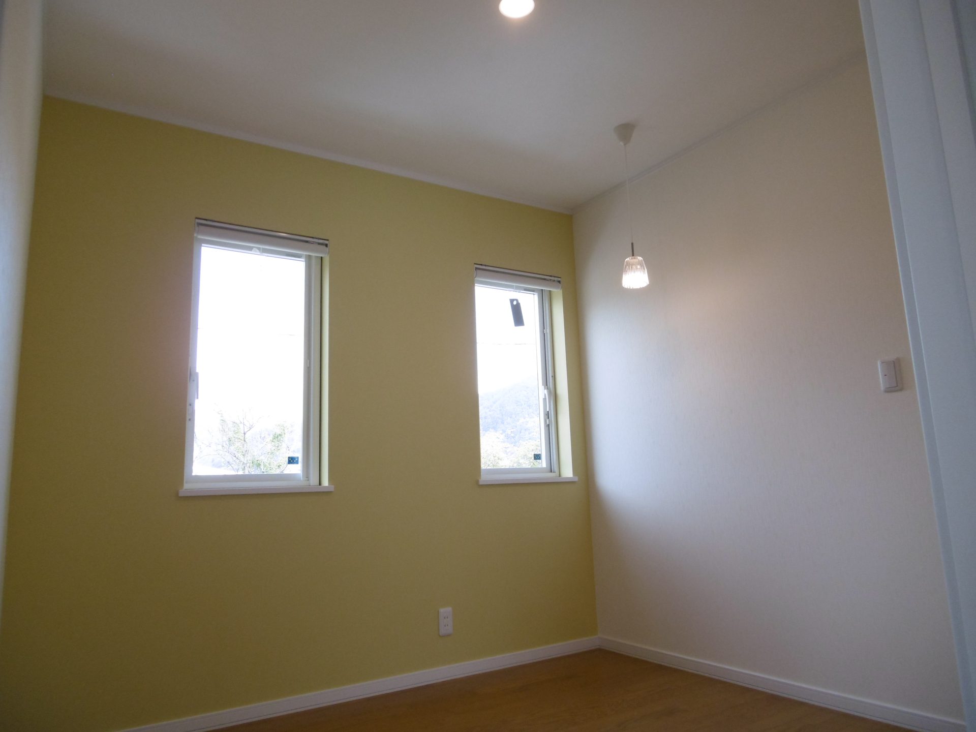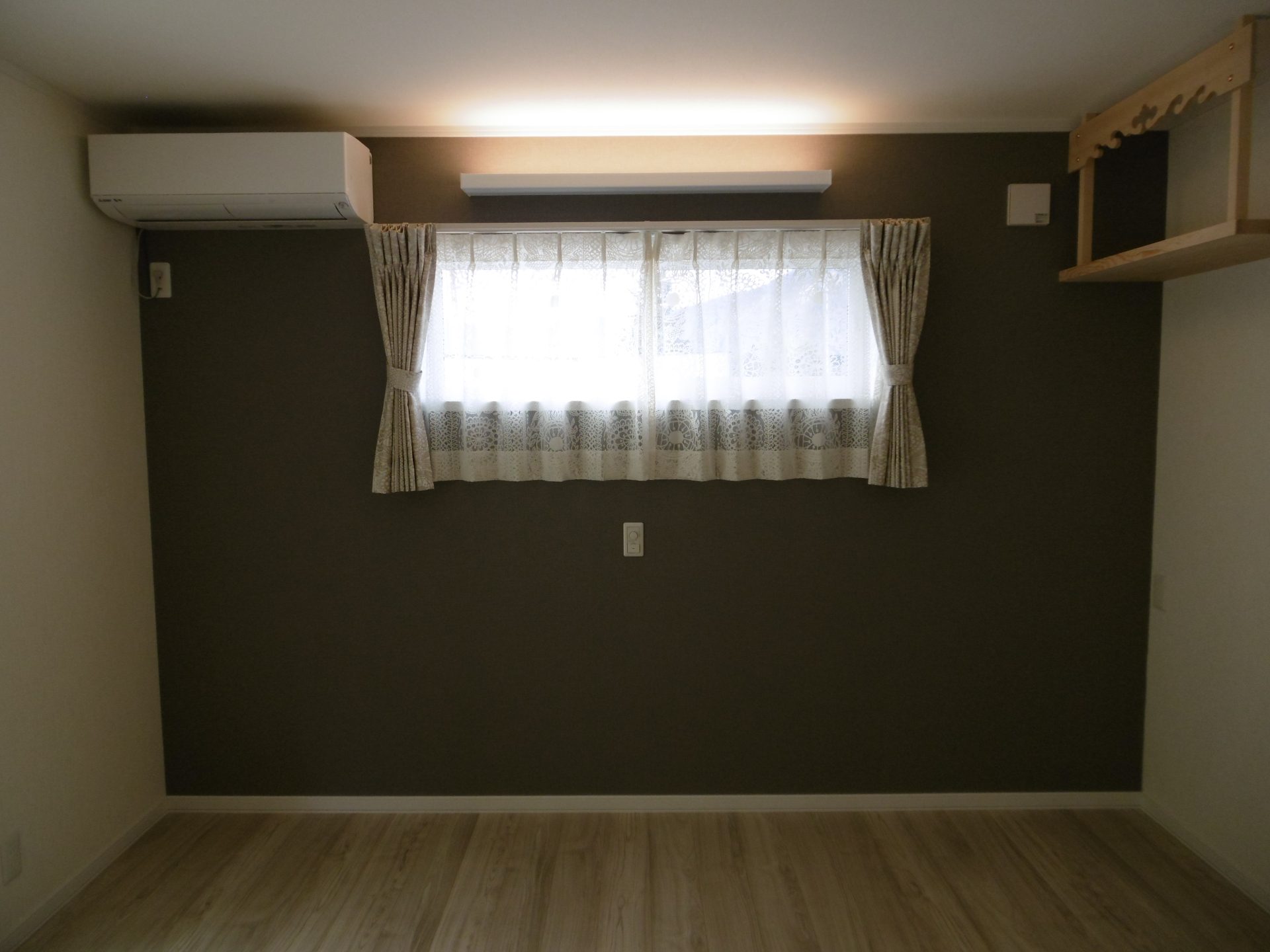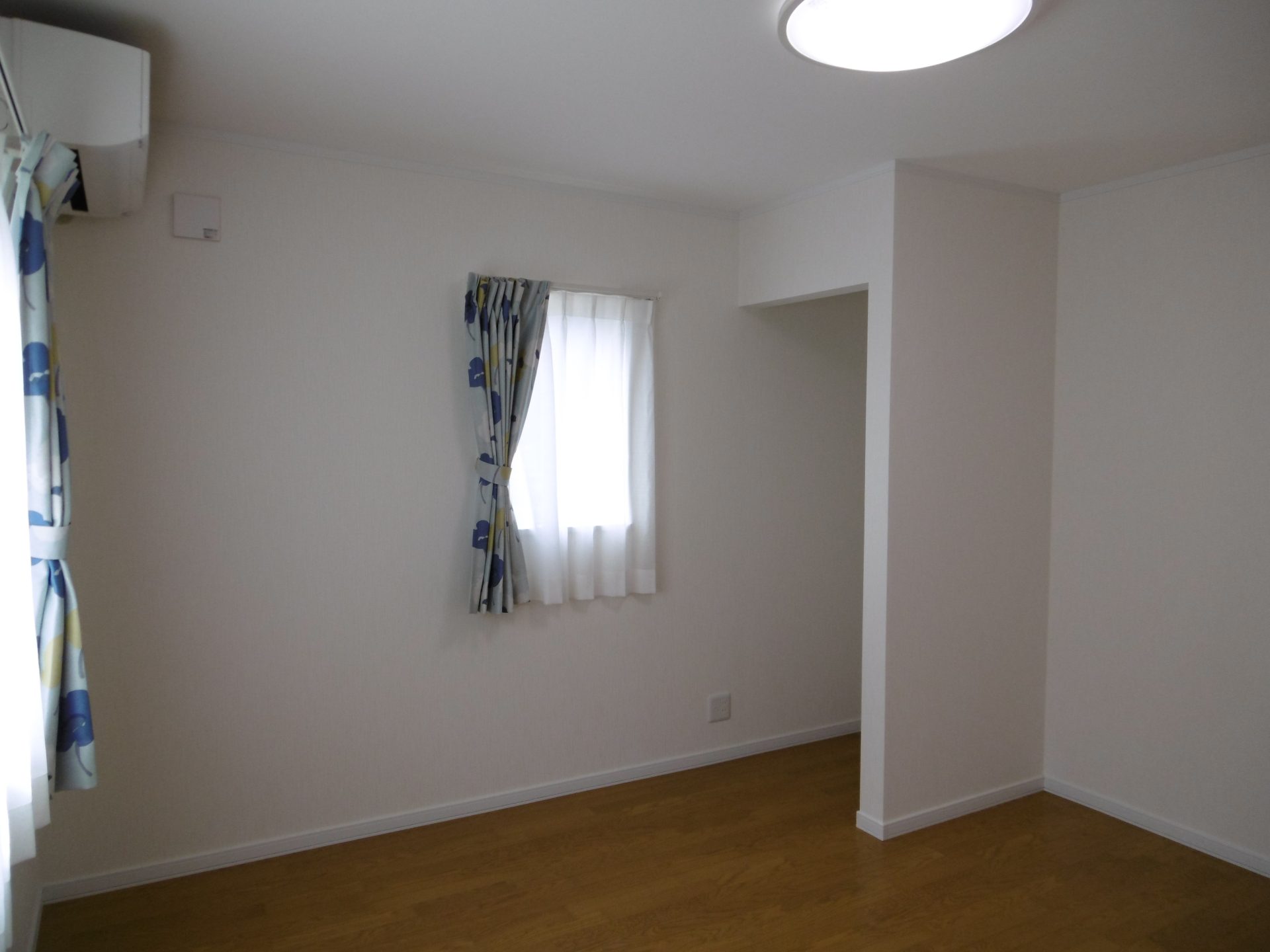 2F寝室。部屋の一画に将来用の仏間スペースを設置。